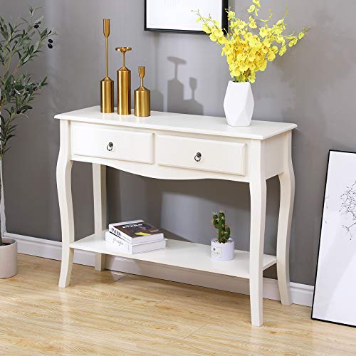 SogesHome Consolle Tavolo da Ingresso Classico Bianco con 2 Cassetti e Ripiano per Ingresso Corridoio Soggiorno, 100 cm x 33 cm
