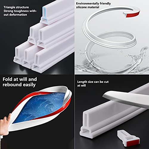 [Facile da installare] Forte design autoadesivo, la barriera d'acqua della doccia è facile da installare. Deve calafatare tutto intorno ai bordi o alle guarnizioni per essere sicuro. (1) pulire la superficie dell'installazione e mantenerla asciutta, quindi incollare la striscia di blocco dell'acqua sul pavimento. (2) incollare il punto in cui la striscia di blocco dell'acqua entra in contatto con la superficie del muro e il punto in cui viene a contatto con il pavimento.(3) rimuovere la colla in