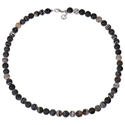 Sogni d'oro, collier da donna in argento 925 sterling rodiato, con agata del Botswana 210 ct, 45-47 cm, con moschettone e argento, colore: nero/grigio, cod. SB365449S