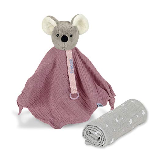 Pratico set per bebè: Pupazzo di pezza Mabel Il Topolino con dolci e morbidi dettagli, Fazzoletto tenero da coccolare