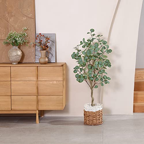 SOGUYI 120cm Piante Finte da Interno Grandi, Eucalipto Artificiale con Foglie di Dollaro d'Argento Verde, Pianta Artificiale con Vaso Plastica per Casa Ufficio Balconi Decorazioni(1 Pezzi)