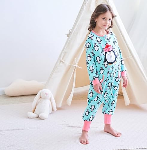 SOIBEEN Coperta indossabile per bambini con piedi, 1.0 TOG, unisex, 100% cotone, sacco a pelo per bambini, stampa pinguino, 3-4 anni