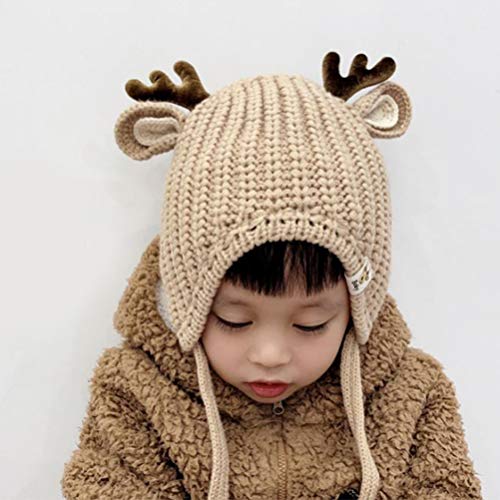 SOIMISS Berretto Berretto in Corno di Renna per Bambini Cappelli Invernali Caldi Lavorati a Maglia Adorabile Cappello Alluncinetto con Paraorecchie Regalo di Natale per Bambina (Beige da