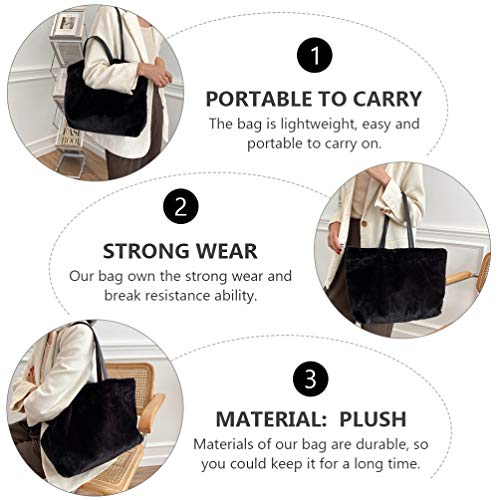 SOIMISS Borsa di Peluche Tote Bag in Pelliccia Sintetica Grande Borsa a Tracolla Inverno Fuzzy Handbag Work Laptop Tote Bag for Women Business School College Travel (Black)