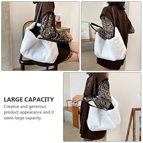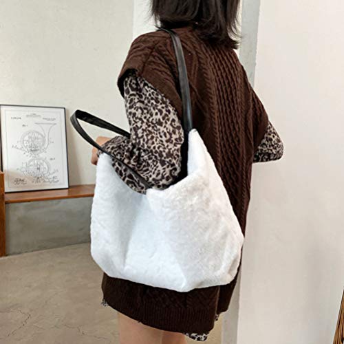 SOIMISS Borsetta Borsa Tote in Pelliccia Sintetica Borsa Soffice Borsa a Tracolla Grande Borsa a Secchiello Grande Custodia Borsa Grande Peluche Alta Capacità Viaggiare Bianca Cartella