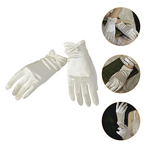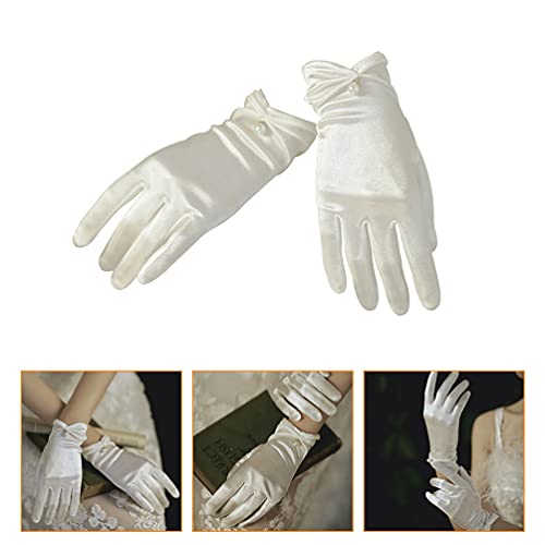 SOIMISS 1 Pair Opera Raso Guanti da Polso Guanti Banchetto Tea Party Guanti di Ballo del 1920S Guanti da Sposa da Sposa Prom Guanti per La Cerimonia Nuziale Costume Party Accessori Bianco