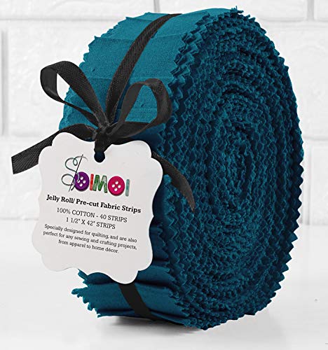 Soimoi 40 Pezzi Solidi Blu Ottanio Tessuti Pretagliati Di Cotone Per Quilting Strisce Artigianali 1.5 Pollici Jelly Roll