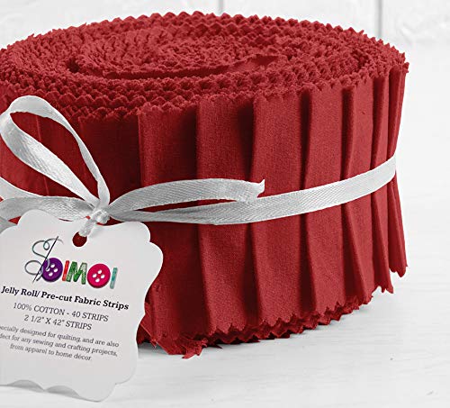 Soimoi 40 Pezzi Solidi Rosso Tessuti Pretagliati Di Cotone Per Quilting Strisce Artigianali 2.5 Pollici Jelly Roll