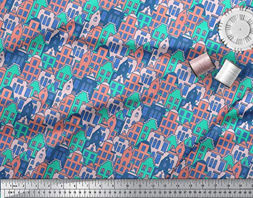 Soimoi Tessuto Popeline Stampato Architettonica Cucito in Cotone al Metro 58 Pollici Wide-Blu