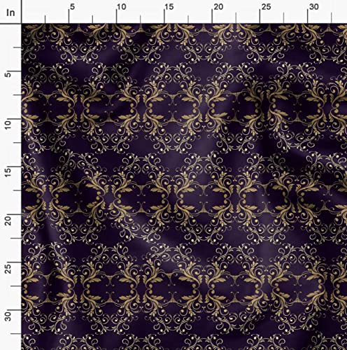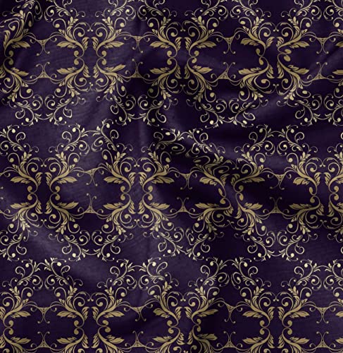 Soimoi Viola Crepe Poli Tessuto filigrana Damasco Tessuto Decorato Stampato dal Metro 42 Pollici Larghi
