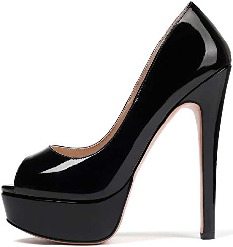 Soireelady Tacchi a Punta Aperta, Scarpe con Plateau Donna, Tacco a Spillo Festa Scarpe, Scarpe col Tacco Donna Nero EU38