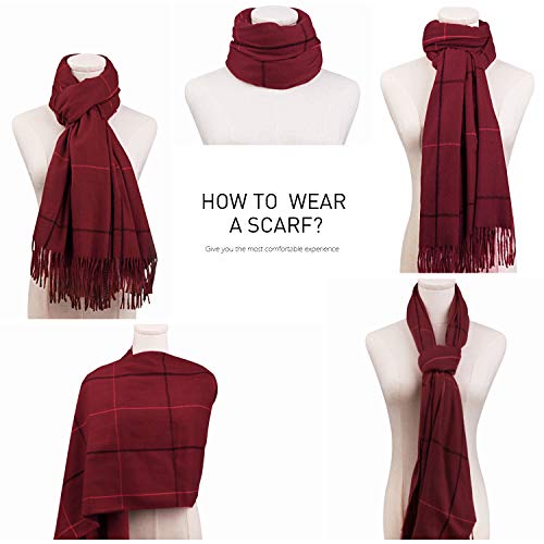 SOJOS Sciarpa Scozzese Calda e Morbida Moda Donna Scialle Lungo Griglia Inverno Caldo Reticolo Sciarpe Grandi SC329 con Borgogna