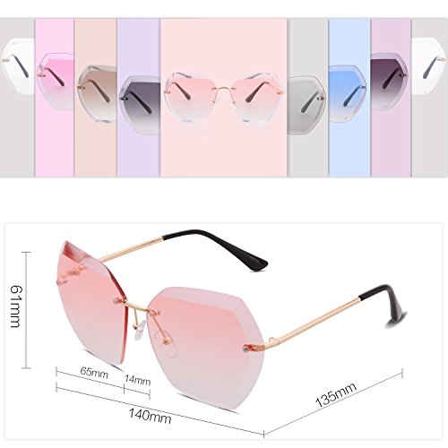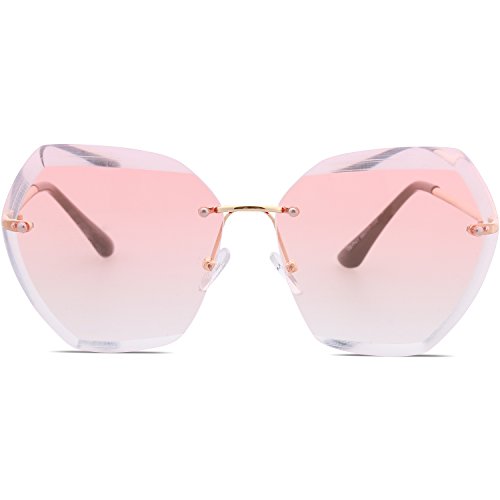 SOJOS Vogue Occhiali da Sole Donna Oversize Esagonali Poligono Classici Vintage Retrò Senza Montatura Moda SJ1073 con Oro Telaio/Arancia Gradiente Lente