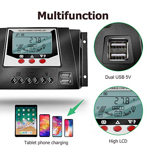 SolaMr 30A Regolatore di Carica Solare 12V/24V/36V/48V Regolatore Intelligente di Tensione di Identificazione Automatica con Display LCD per Solar Home System - WP3048D