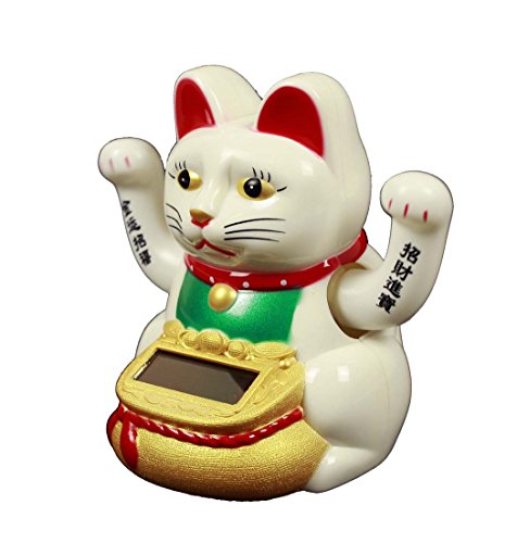 HAAC Solar Gatto che Saluta Gatto Fortunato gatto Portafortuna con 2 mani 10 cm colore bianco