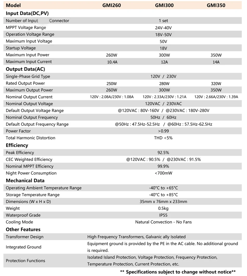 Y&H 300W Solar Grid Tie Inverter MPPT Pure Sine Wave DC18V-50V Input AC180-260V Output for 36V Solar Panel