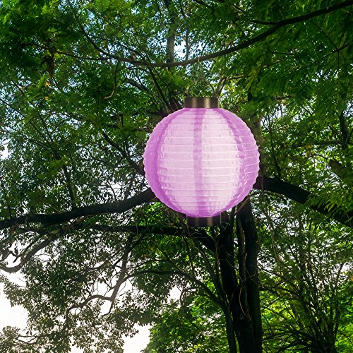 Solar Lampion XL, lanterna solare da appendere, diametro 24 cm, con lampada a LED bianca, 2 lanterne solari colorate resistenti agli agenti atmosferici, con pannello solare integrato e sensore di luminosità, Plastica, Lila, L, LED 1.20volts