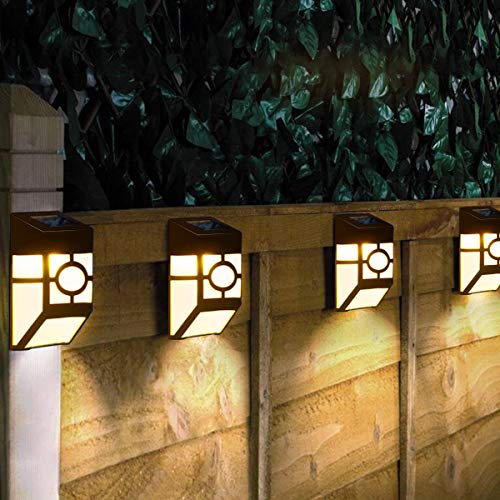 Solar LED Lights Outdoor Wall Fence Security Lighting, Warm White 3000K, Decorative for Deck, Front Door, Stair, Yard and Driveway Path, Patio, Landscape, Outdoor Lighting, Pack of 4