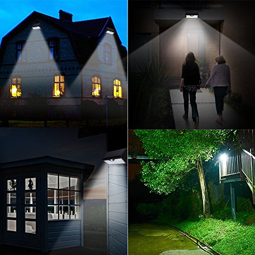 Solar Motion Lights 60 LED esterni, Sensore di movimento solare telecomandato Luci con illuminazione grandangolare, Luci di sicurezza impermeabili wireless per parete, vialetto, patio, cortile, giardino