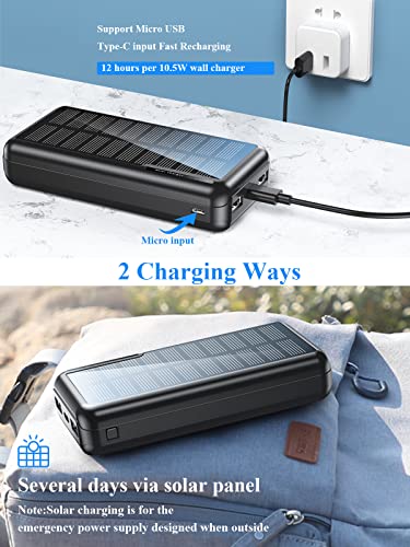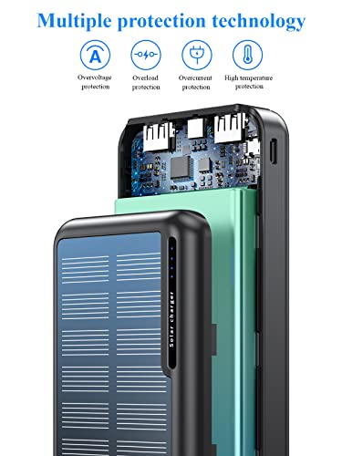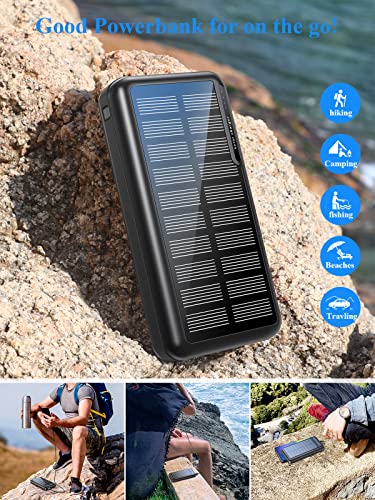 Maggiore capacità 26800 mAh Solar Powerbank - Questo power bank per cellulare è integrato da 26800 mAh agli ioni di litio. Può caricare la maggior parte degli smartphone circa 7 volte, circa 8,5 volte per il tuo Samsung Galaxy S9+, circa 7,5 volte per Huawei P20 Pro. Il potente power bank per campeggio all'aperto.