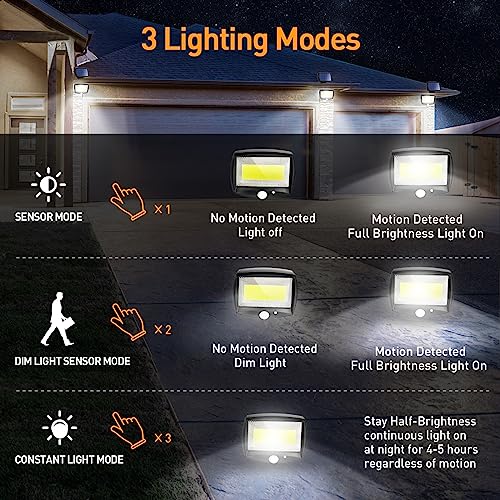Luce Solare LED Esterno, 2 Pezzi Faretti Solari a LED da Esterno con Sensore di Movimento 120° Illuminazione Impermeabile 3 Modalit Lampada Energia Solare da Esterno Faro luci solari da Giardino