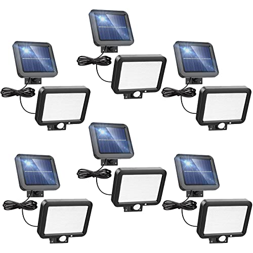 Luce Solare Led Esterno con sensore di movimento, IP65 Impermeabile Luminosa Lampada Solare 56 LED 6500K Lampada da parete di sicurezza solare lampada da parete per cortile con cavo da 16,5ft 6 Pezzi