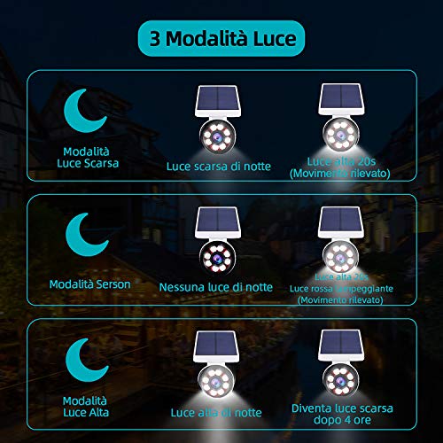 Luce Solare Esterno con Sensore di Movimento,Wireless 8 LED Luce Esterno Solare Sensore Movimento,88 Lume Luci Solari da Parete Impermeabile,Luce Solare Esterno Giardino,Patio,Portico