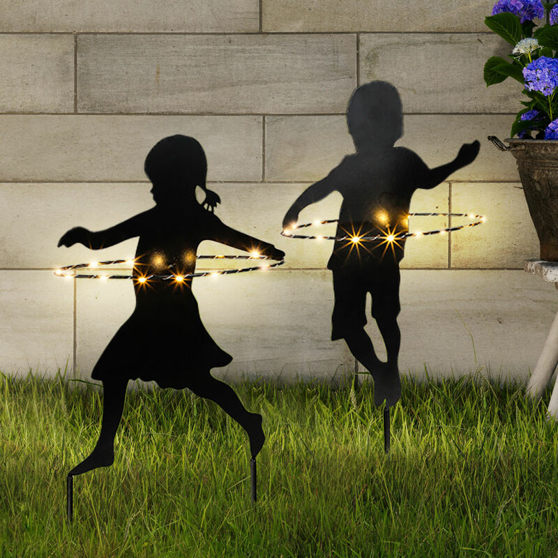 Descrizione Queste due luci a spina solare abbelliscono senza sforzo qualsiasi area esterna e allo stesso tempo creano un'atmosfera accogliente. Composta da una ragazza nera e una figura di ragazzo, questa luce solare convince con l'Hulahooprifen illuminato, che ha 15 lampadine a LED bianche ciascuna ed emette un'illuminazione piacevole e accogliente al tramonto. La batteria esistente immagazzina la luce solare registrata durante il giorno e poi la riproduce. Quindi non è necessaria alcuna connessione di alimentazione qui! Con l'aiuto del picchetto da terra lungo 16 cm, la luce decorativa può essere facilmente utilizzata nel tuo spazio esterno, come il giardino, nel letto, sul terrazzo o nell'area d'ingresso. Grazie al loro design, si adattano facilmente al luogo di utilizzo prescelto e attirano l'attenzione di tutti. Un'altra particolarità è l'attuale classe di protezione IP44, che rende le luci resistenti agli schizzi d'acqua. Quindi non devi preoccuparti se il sole rimane lontano.