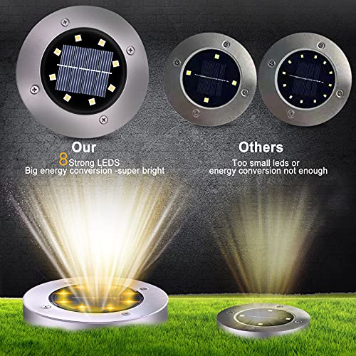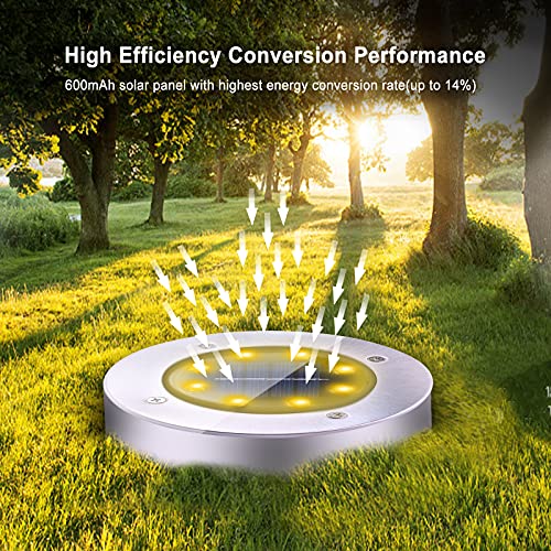 Luce Solare da Giardino 4pcs 8 LED Luci Solari Giardino Esterno 600mAh Batteria Integrata IP67 Impermeabili Calda Solare Terra Lampade da Sicurezza Lampada Bianco Caldo per Scala Paesaggio Strade