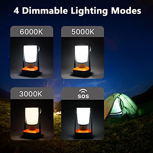 【4 modalità di illuminazione dimmerabili】: la luce da campeggio ha 4 modalità di illuminazione: bianco caldo (3000 K)/bianco naturale (5000 K)/bianco freddo (6000 K)/lampeggiante SOS. Basta premere e tenere premuto il pulsante LIGHT della lanterna a LED per attivarla, fare clic per passare a una luminosità confortevole adatta alle diverse esigenze di illuminazione personali. Scegli la luminosità c