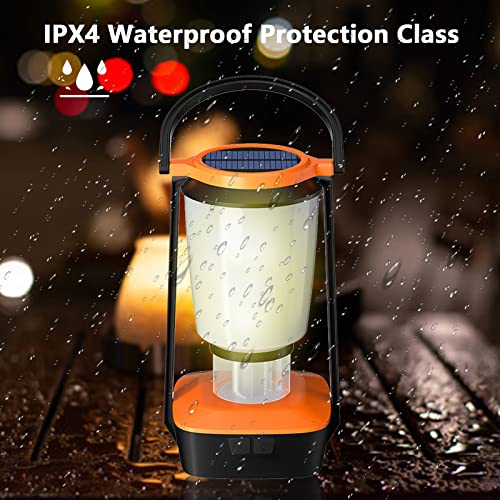 Solare Lanterna da Campeggio, 4400mAh Ricaricabile Portatile Impermeabile Lampada LED Campeggio, 4 Modalità di Illuminazione, 7 Colori Luce RGB,Lanterna da Esterno per Campeggio,Pesca, Escursionismo