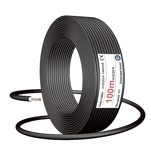 Cavo per pannello solare: cavo solare, nero, cavo singolo, 4 mm², 100 m, impianto di messa a terra, adatto per l'uso in tutti gli impianti fotovoltaici per il cablaggio di pannelli solari.