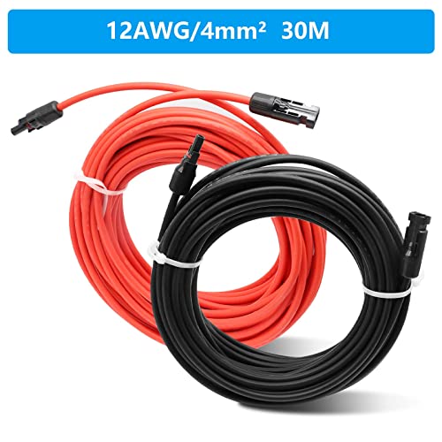 Cavo solare 4 mm2, cavo PV 4 mm2 (rosso + nero) con spina, lunghezza 2 x 30 m, cavo solare per centrali da balcone, installazione a terra, fotovoltaica, senza alogeni, doppio isolamento