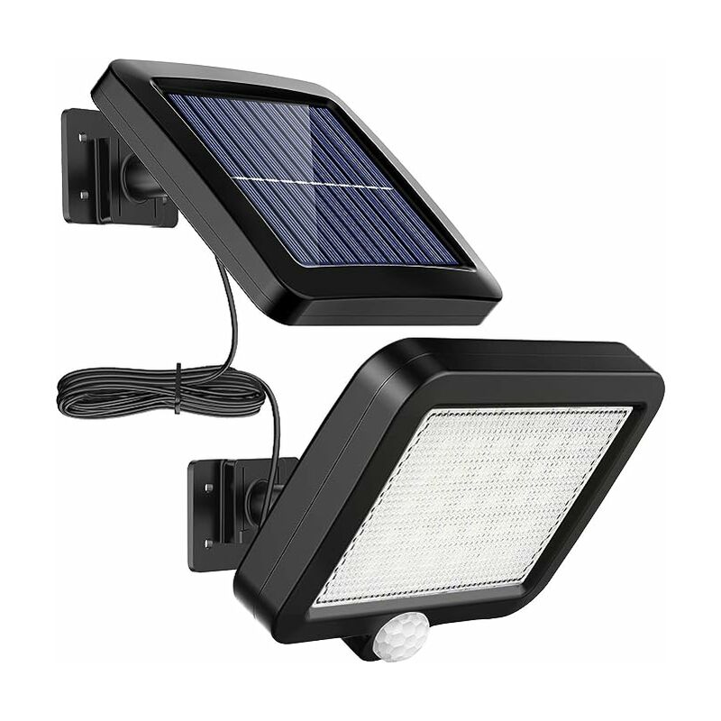 Pannello solare diviso: rispetto alle tradizionali luci solari, separiamo il pannello solare e il corpo principale della luce, puoi installare il pannello solare in un luogo soleggiato con il cavo impermeabile da 5 m incluso per immagazzinare molta più energia durante il giorno e produrre una luce più lunga e luminosa di notte. Illuminazione di alta qualità: con 56 luci solari a LED con un angolo di rilevamento e illuminazione di 120°, copre molta più area di illuminazione, fornisce un'illuminazione super luminosa su un'ampia area . Questo crea un ambiente luminoso e sicuro per i passanti anche di notte. Sensore di movimento e sensore di luce: il sistema di rilevamento è una combinazione di sensore di luce e sensore di movimento. Il movimento aggiornato rileva le persone a una distanza di 3 -5m. Quando viene rilevato un movimento, le luci solari si accendono automaticamente;