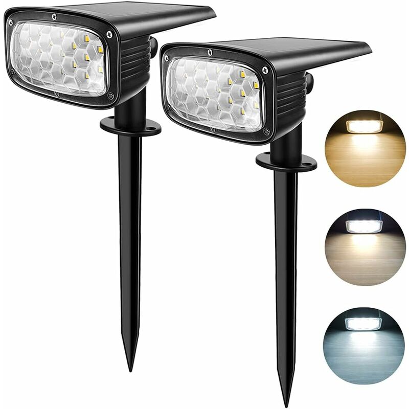 LUCE SOLARE DEL PAESAGGIO - 【34 LED】: questa luce di paesaggio solare è composta da 17 sfere LED bianche calde (2600-2800 K), 17 sfere LED bianche (6000-6500 K) e un pannello solare in silicio monocristallino da 1,3 W 5,5 V. Non solo può utilizzare l'energia solare, ma può anche utilizzare una batteria al litio 18650. dentro. È più unico, elegante e pratico rispetto ad altri 8 o 12 LED sul mercato. 【3 MODALITÀ DI ILLUMINAZIONE】: questa luce per esterni ha 3 modalità di commutazione: bianco caldo, bianco freddo e bianco. I proiettori per paesaggi solari possono rilevare automaticamente i cambiamenti di luminosità. dall'ambiente esterno. Quando la luminosità è sufficientemente basso, passerà automaticamente dalla modalità di risparmio energetico alla modalità di illuminazione senza rilevamento del movimento (accensione automatica di notte/spegnimento automatico all'alba). 【PANNELLI SOLARI ;