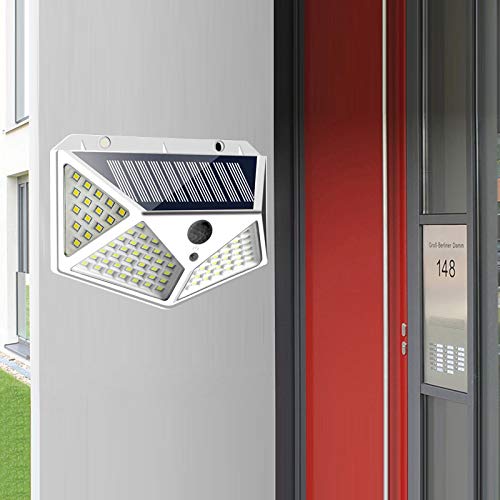 100 luci a parete solari a LED: i 100 led migliorati forniscono ulteriore luminosità e aree più visibili con un angolo di illuminazione ultra ampio di 270 °. Dotato di precisi sensori di movimento PIR, può fornire unilluminazione eccellente e trasformare lo spazio buio in uno spazio luminoso.