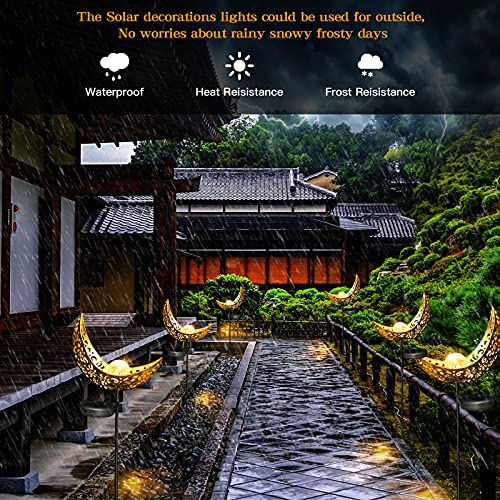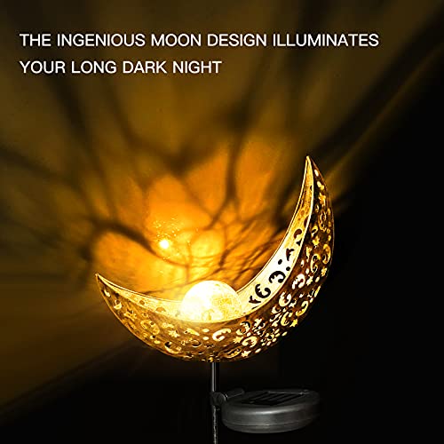 Luci Solari Esterno decorative, XVZ confezione da 2 pezzi, luci solari giardino a forma di luna in metallo intagliato, per prato, patio, yard, feste di nozze, decorazioni, luce bianca calda