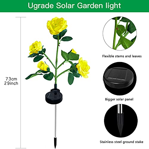 ZQX Luci Solari Esterno Giardino, Rose Artificiali per Decorazioni Lampade Solari da Giardino Fiore Luce Solare LED Esterno con 5 Fiori di Rosa per Patio Cortile Natale Lampione Feste (Giallo)