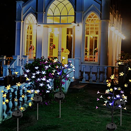 ZQX Luci Solari Esterno Giardino, 2 Pezzi Rami di Ciliegio Decorativi Lampade Solari da Giardino, IP65 Impermeabili 2 Modalità Luce Solare LED Esterno con 20 Fiori di Ciliegio per Patio (Multicolore)