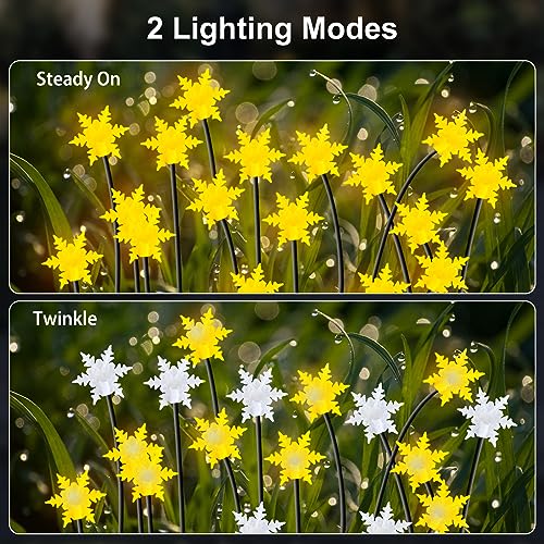 【Lampeggiante e Costante Modalità di illuminazione】 Le nostre luci solari da giardino sono progettate con 2 modalità di illuminazione, lampeggiante e Illuminazione costante, che creeranno un'atmosfera meravigliosa e attiva per la decorazione del tuo giardino o per le decorazioni natalizie. Basta cambiare il pannello solare in basso per scegliere la modalità. Rendi scintillante il tuo giardino ogni sera e aggiungi brillantezza al tuo Natale.