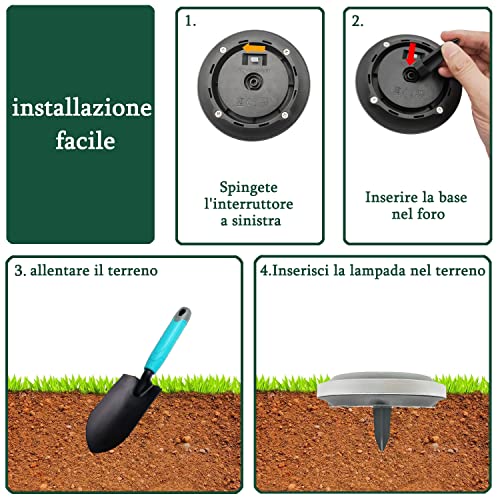 【Facile da usare】 Accendi l'interruttore sotto la luce, inserisci la luce nel terreno o mettila a terra. Questi luce solare led esterno hanno un sensore di luce altamente sensibile che accenderà automaticamente le luci di notte e si spegnerà all'alba!