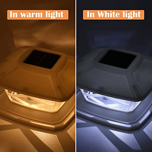 2 Luci Solari da Esterno di Posta Cappello Lampione a LED Impermeabili Lampade a Palo Solare per Recinzione Ponte Giardino Patio Passerella Scale, 4 x 4, 5 x 5, 6 x 6 Pali in Legno (Bianco)