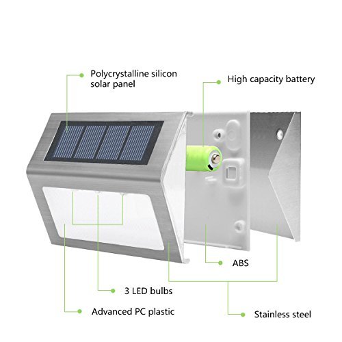 Luci Solari Giardino LED Esterno Onshida, Lampade solari esterne impermeabili, Luci a 3 LED per percorso di illuminazione a LED per giardino, patio, terrazza, garage, scale (6 pcs)