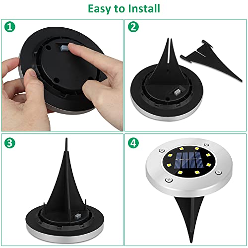Luci solari da terra super luminose: ogni luce solare da giardino è dotata di 8 LED, batteria ricaricabile da 600 mAh e pannelli solari ad alta efficienza, che fanno sì che la lampada solare illumini una gamma più ampia nel tuo giardino fino a 8-10 ore con un solo 4-6 ore di ricarica. Ottima scelta per la tua serata all'aperto