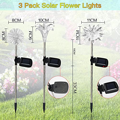 Luci solari giardino, 3 pacchi luci solari fiori Girasole Dente leone Luci fiori giglio Luci Natale Luci cambianti multicolori per decorazioni da giardino di casa