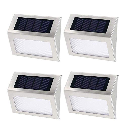 Luci Solari,Lampada Esterno Led Solare,3 LED Giardino Luce Solare per Parete, Giardino,Patio, Ponte, Cortile,Stairway,Esterno (4 Pezzi Bianco freddo)