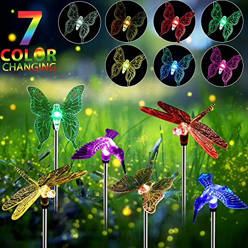 Il pacchetto include: un totale di 3 luci a palo solare in 3 stili, ovvero luci a LED a farfalla, libellula e uccello, ciascuna con 7 variazioni di colore, che cambiano tra rosso, blu, bianco, viola, giallo e verde, adatte per la decorazione nei vialetti passerelle, sentieri del giardino, cortili o altri luoghi all'aperto