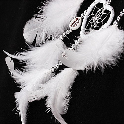 Soledi Acchiappasogni indiano con piume, a forma di cuore, regalo e decorazione per casa, parete, da appendere bianco