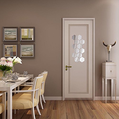 Soledi moderno 12PCS geometrico 3D specchio esagonale acrilico Wall Sticker Decor Home DIY