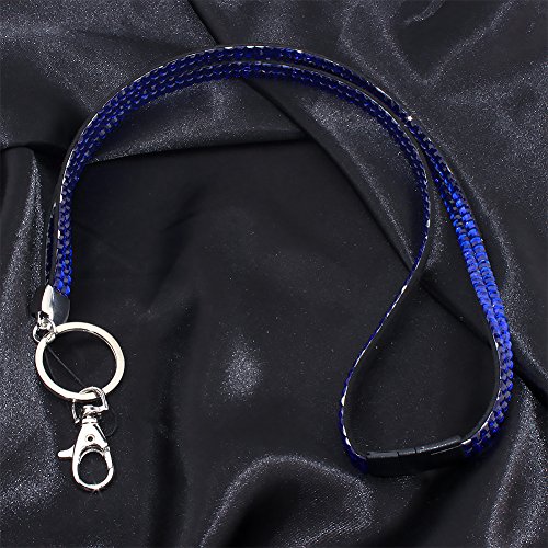 Soleebee 80cm Bling Strass Pelle Collo Cordini Cinghie per Porta Badge Retrattile per Carte di identità, Chiavi, Impiegati, Carta dello Studente, Chiave, USB, ECC. (Blu Scuro)